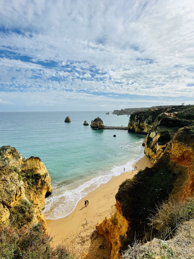 An der Bushaltestelle kam ich mit Malena und Marcus ins Gespräch, als ich mich vergewissern wollte, ob ich von den 45 Haltestellen des Busbahnhofs an der richtigen stehe. Beide kommen aus Karlsruhe und sind per Interrail auf Europatour. Ich merkte bereits bei der Begegnung mit Milan, wie auch im Hostel in Sevilla, als an meinem letzten Tag zwei Studentinnen aus Passau in mein Zimmer dazu stießen, dass es zur Abwechslung sehr guttut, auf Deutsche zu treffen. Fernab von zuhause in einem fremden Land fühlt es sich einfach automatisch wie ein Stück Heimat an. Und so war es auch mit Malena und Marcus auf der vierstündigen Busfahrt nach Lagos.