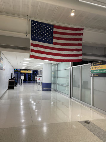 Als ich bei Nummer 146 ankam, war bereits eine lange Schlange am Schalter von United Airlines. Noch bevor der Check-In eröffnet wurde, gingen Mitarbeiter die Reihen durch, um die Flugtickets der Passagiere und ihre Reisepässe abzuchecken. Als eine Mitarbeiterin bei mir ankam, wusste ich, was dies bezwecken sollte. Sie hatte weniger Interesse an meinen Dokumenten, die ich vollständig und korrekt vorlegen konnte, als an meinen Plänen für die Reise. Was sich anfangs noch nach interessierten Fragen anhörte, entwickelte sich mehr und mehr zu einem Interview und ich verstand, dass die Mitarbeiter der US- amerikanischen Fluggesellschaft angehalten sind, alle Hintergründe der Passagiere über die Einreise in die USA zu erfragen und mögliche Sicherheitsrisiken für den Flug sowie für die Staaten bereits vor dem Abflug zu eliminieren.