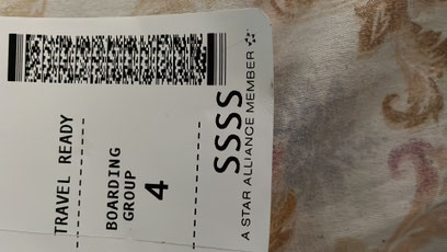 Ich erhielt als Ausdruck des Misstrauens in meine Person ein „SSSS- Ticket“. „Secondary Security Screening Selection“ bedeutete für mich eine zusätzliche, gesonderte Sicherheitskontrolle vorm Boarding.