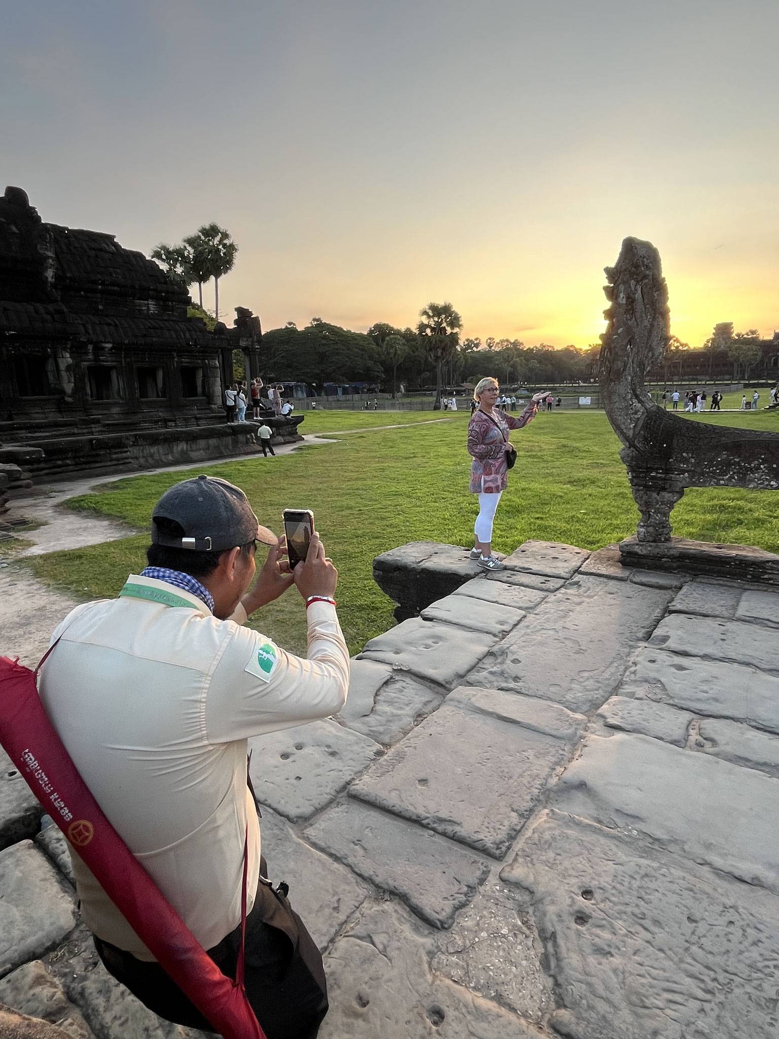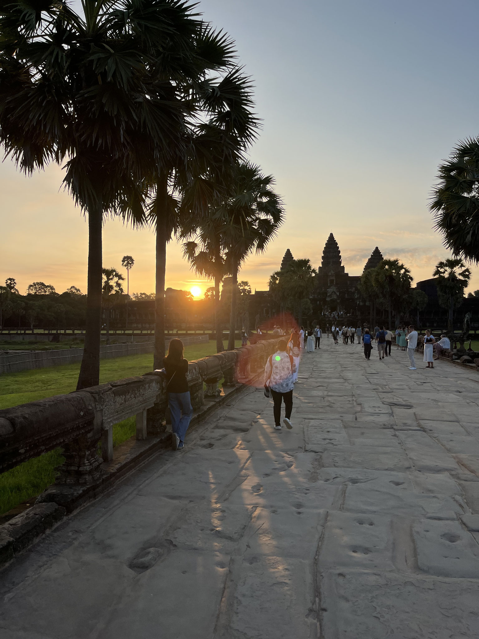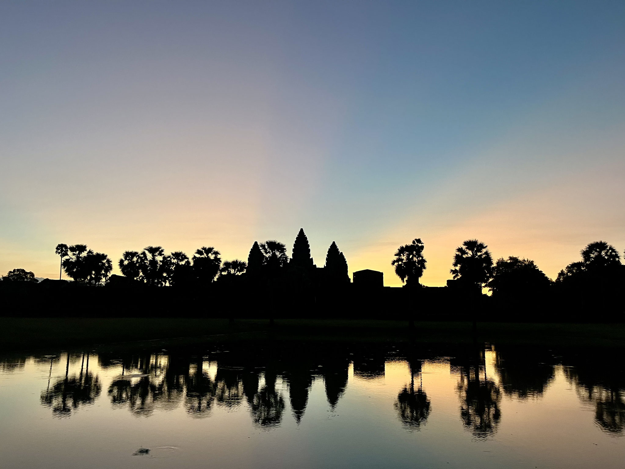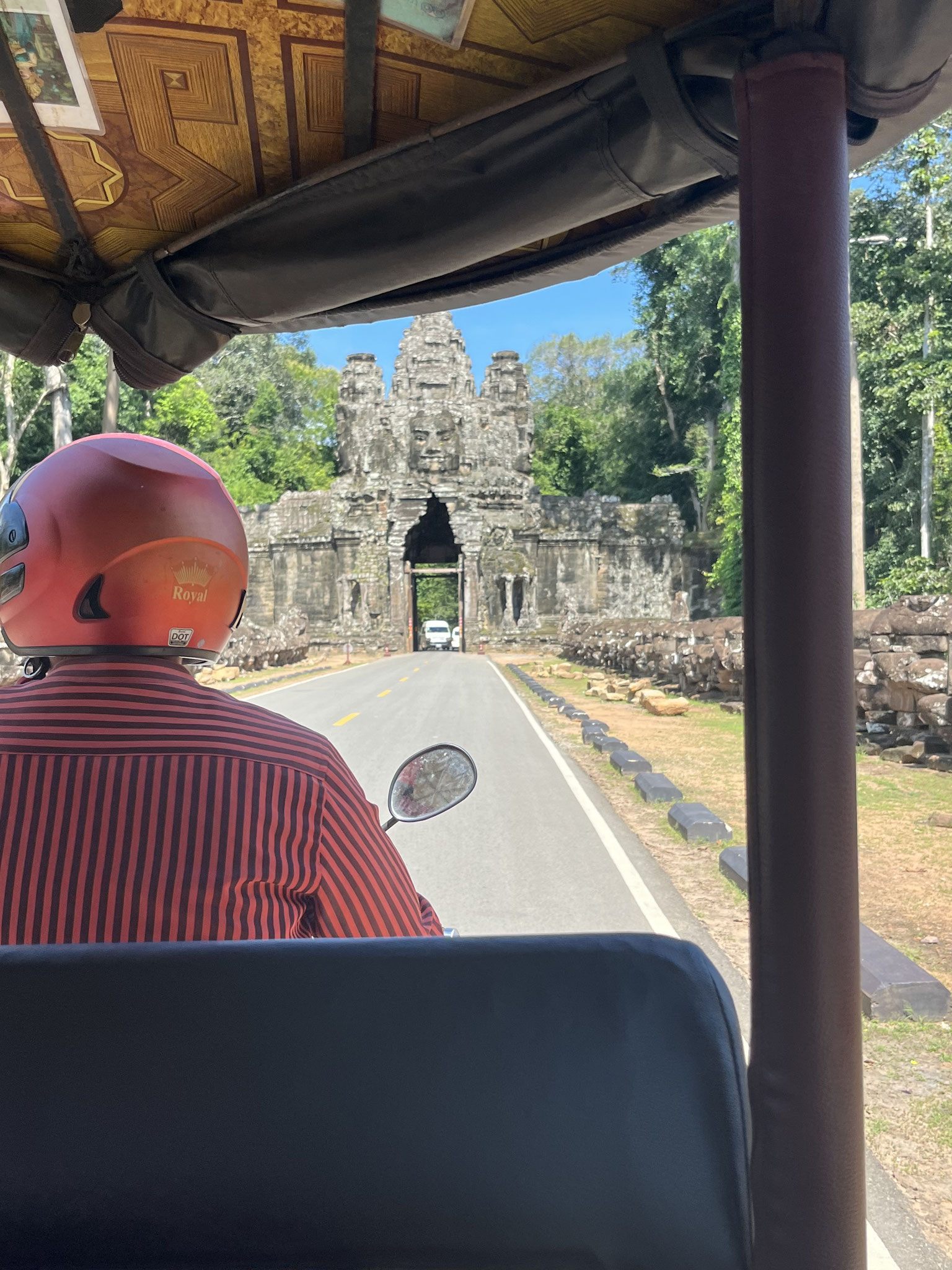 Um 4 Uhr am Morgen des Folgetages fanden wir uns in selbigem TukTuk wieder, in dem wir einen Tag zuvor zu unserer Unterkunft gefahren wurden. Von unserem Fahrer hatten wir uns ein Komplettpaket für den Besuch der Tempelanlagen mit einem Tourguide andrehen lassen, um möglichst viel erfahren zu können. Dieser saß uns nun also gegenüber. Für die Uhrzeit und auch sonst hatte er unstrittig zu viel Energie und startete unsere Tour gleich mal mit einem Monolog, der die 20- minütige Anfahrt über andauerte, und er ließ sich von meinen verschlafenden und überforderten Blicken nicht irritieren. Der Ertrag des frühen Aufstehens sollte der Sonnenaufgang über Angkor Wat sein.