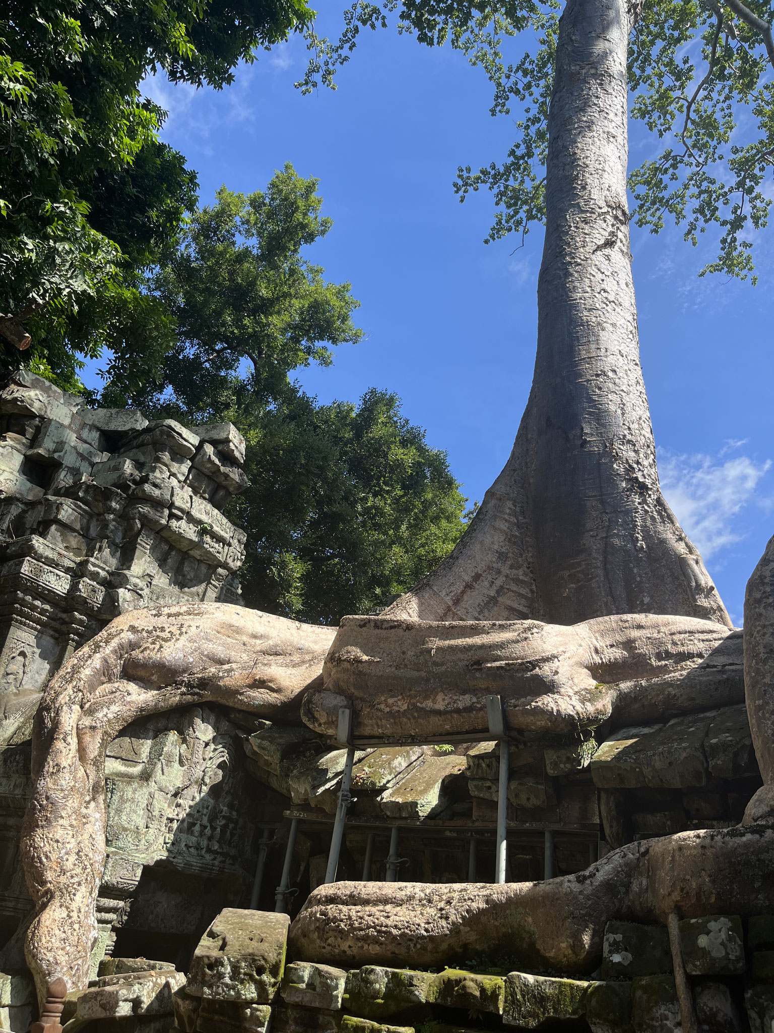 Einer ehemaligen Stadt, die einst die größte weltweit war. Vom 9.-15. Jhdt. war sie das Zentrum des historisches Reichs der Khmer und hatte mit knapp 1 Mio Einwohnern sowie einer Fläche, die die heutige New Yorks übertrumpfen würde, unvergleichbare Ausmaße. Von der Größe und Vielzahl an Tempelanlagen ganz zu schweigen. Über ein riesigen Kanalsystem zur Versorgung war die Stadt verbunden.